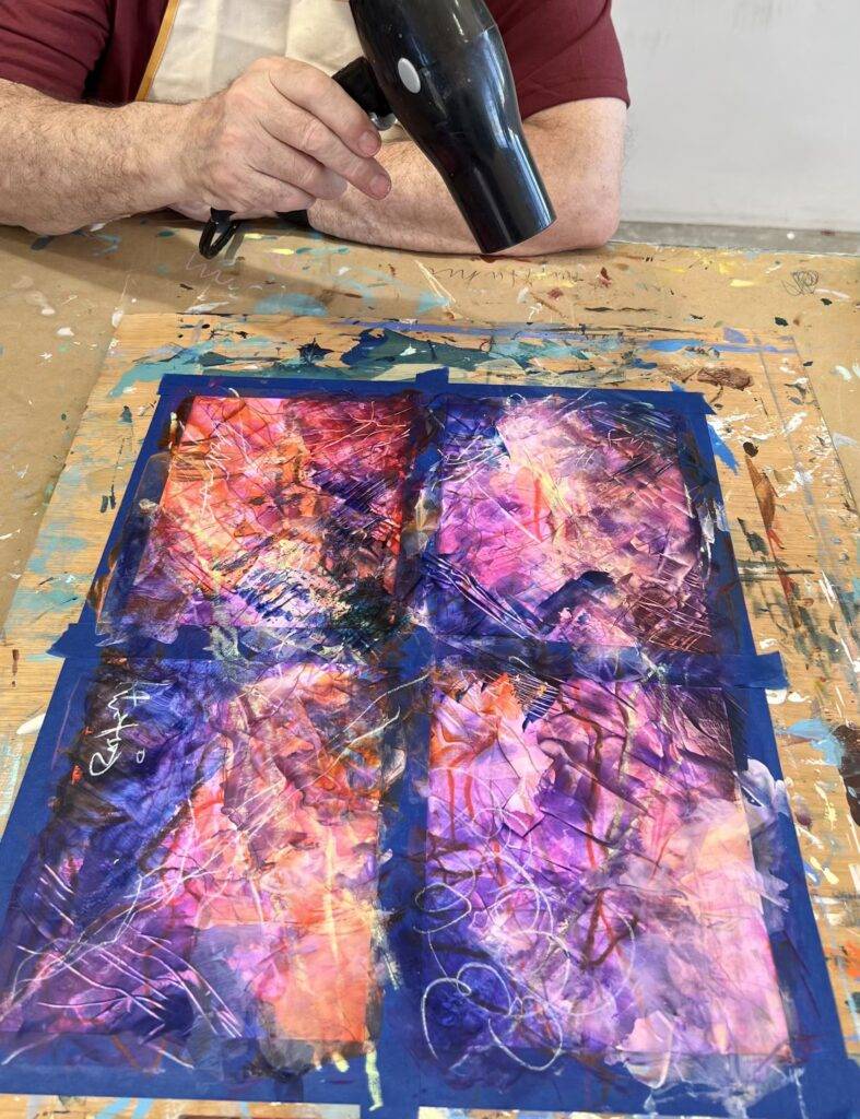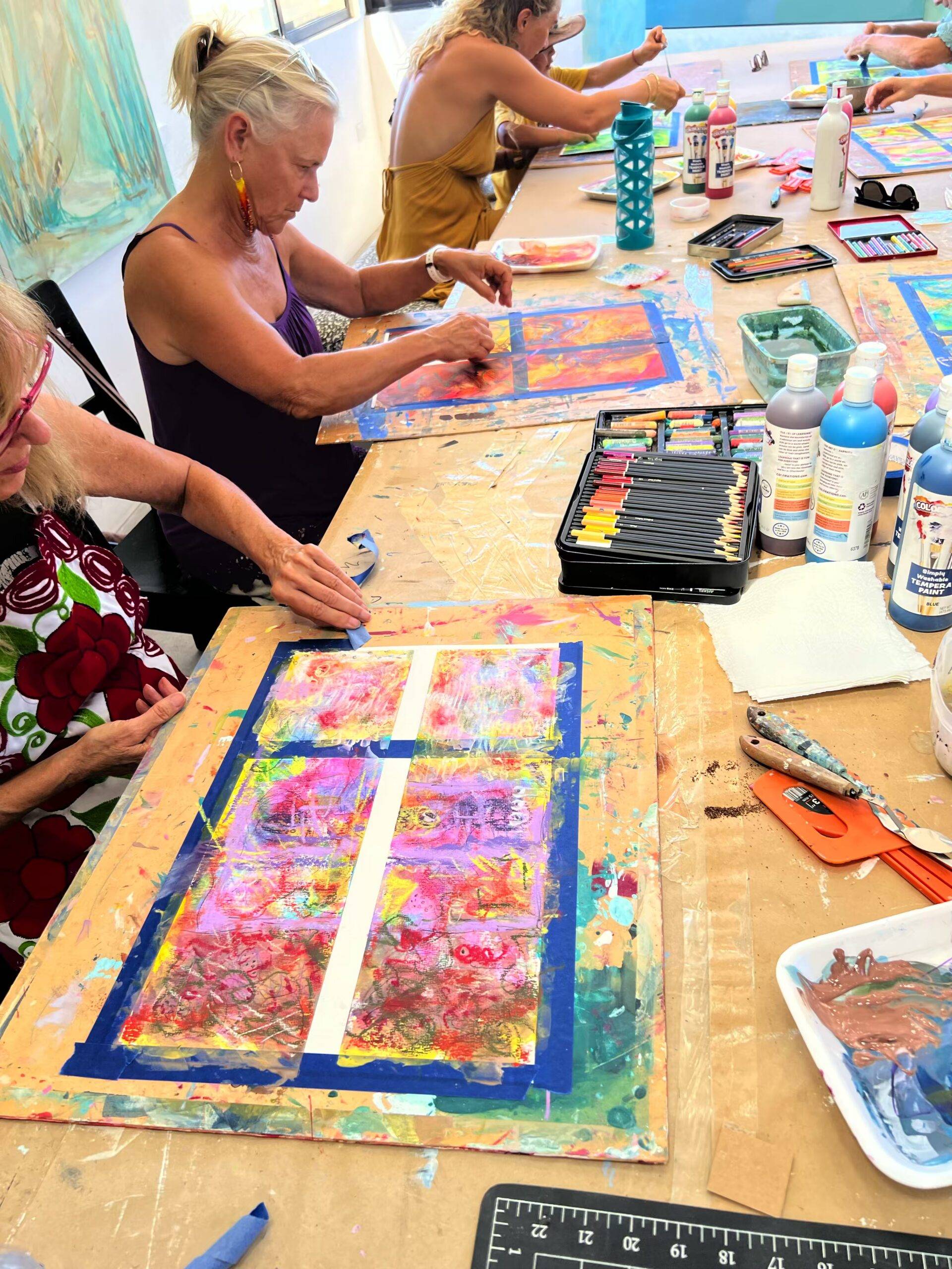 • Each class begins with a short demo and guided warm-up. You’ll then explore your own painting using acrylics, inks, colored pencils, and pastels.